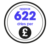 ^Based on £0.20 per kWh on most economical setting ^^Based on average 143 paper towels per £1 spent, using 1 paper towel per dry.