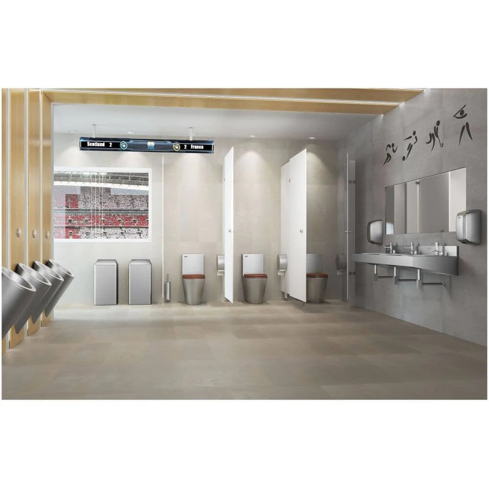 The fastest dry times and the lowest energy consumption. A plug-in hand dryer, featuring an easy installation process that allows 24/7 secure access and eco-friendly operation at just 420W.
