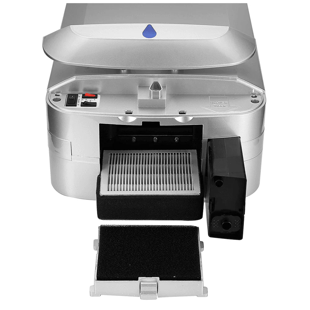 A HEPA filter, protected by a pre-filter provides a clean airflow. The filters are sterilised by internal UV lights.